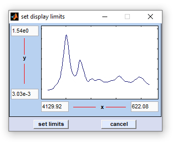 edit fields 1-15: Selection of ROI boundary coordinates can be done by clicking into image - mouse pointer coordinates will be transferred automatically. calc avrg spec (calculate average spectra): permits to calculate, display and store ROI mean spectra. This function works in exactly the same way as the option 'spectra' contained in the cluster imaging functions HCA imaging , KMC imaging and
